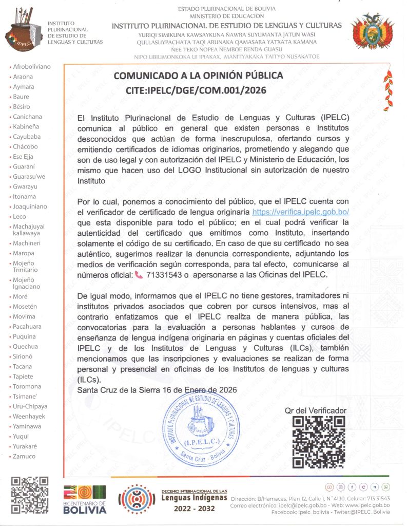 Instituto Plurinacional de Estudio de Lenguas y Culturas (IPELC)